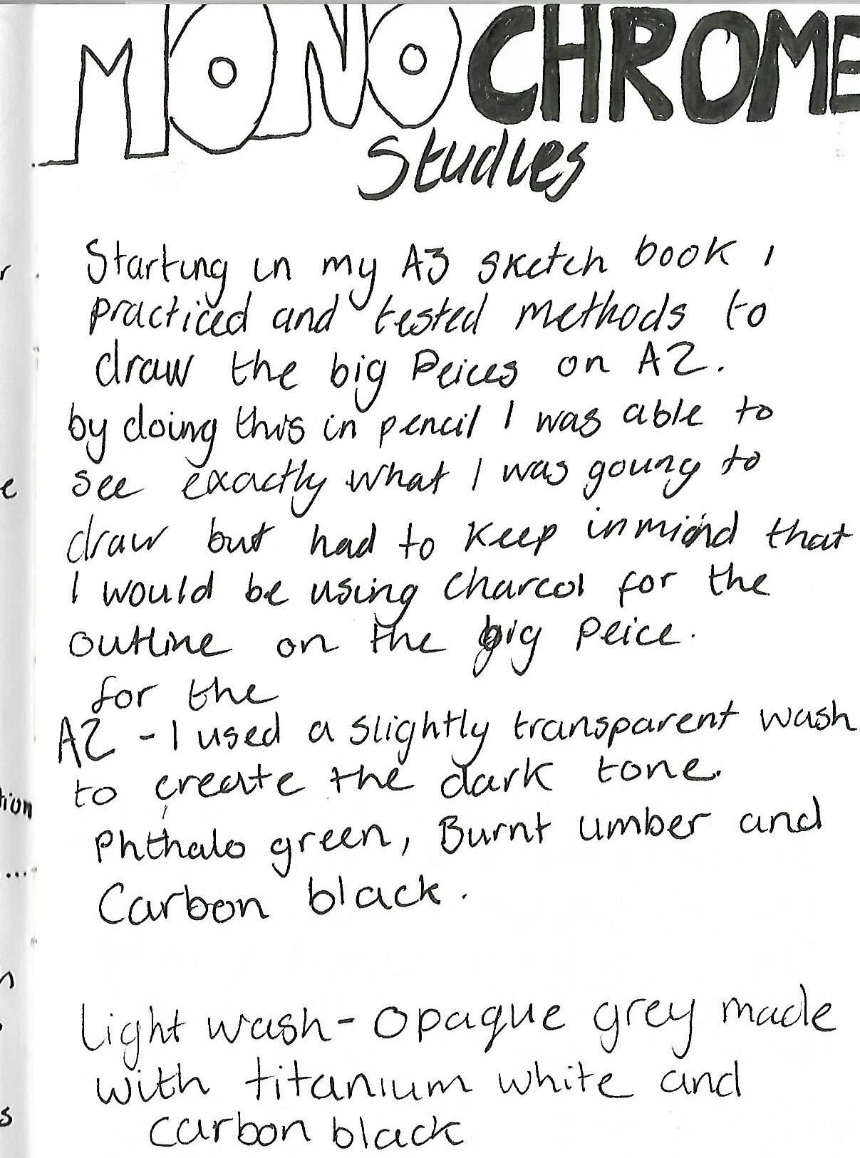 For the A2 piece the dark wash tone I created was a slightly transparent mix of phthalo green, burnt umber and carbon black