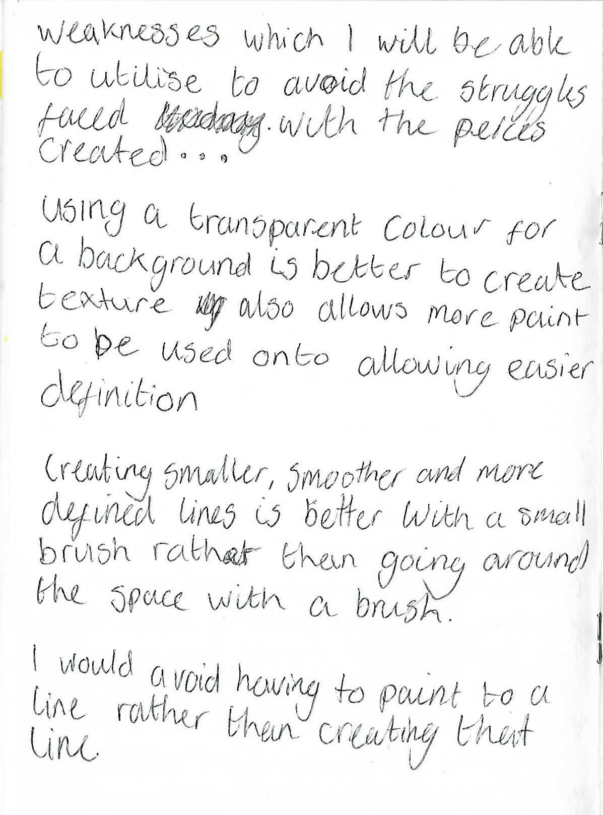 - Transparent paint is harder to see on dark colours which made it difficult when painting on the light ground