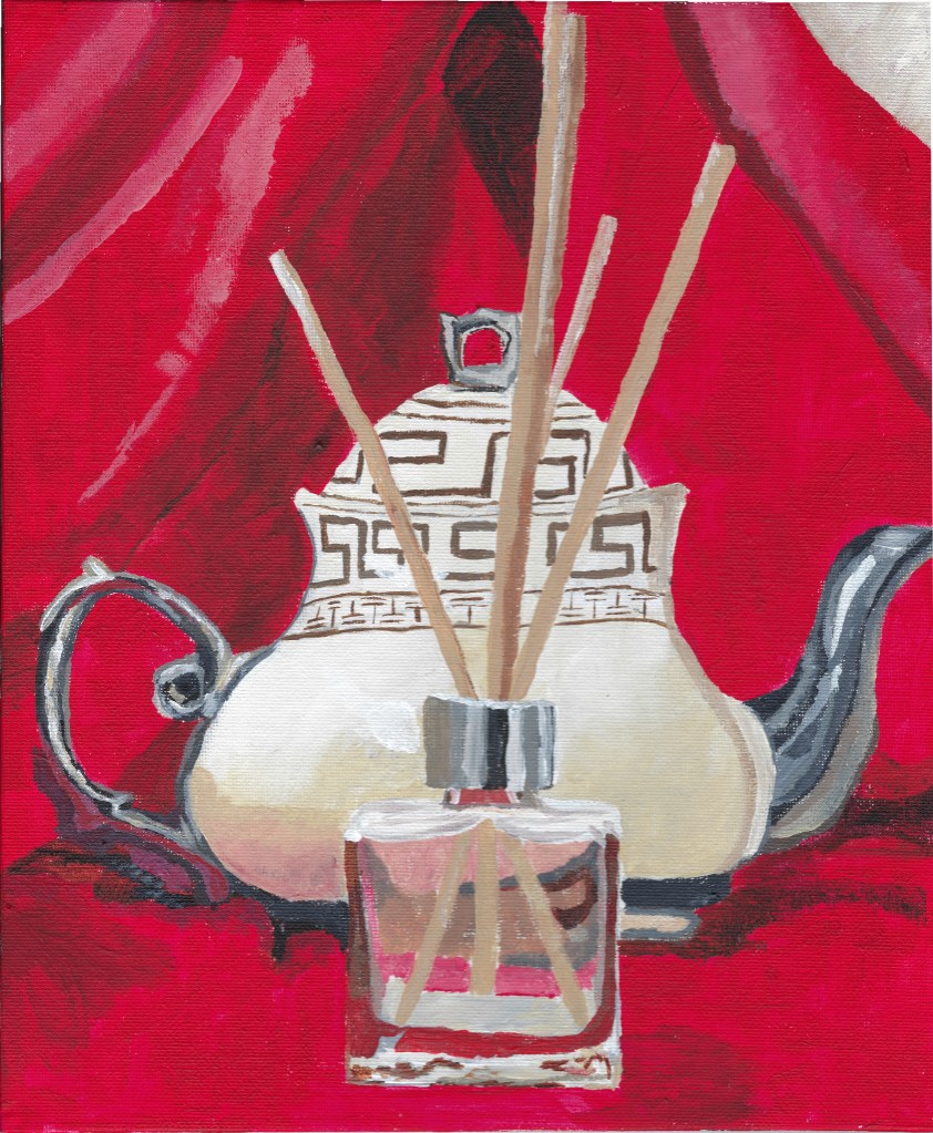 adding a glass diffuser and putting objects on Top of a silk fabric allows me to create a warmer drawing subject created a tonal drawing of the entire still life this allows me to see the main focus of my exercise the fabric adds colour and warmth to the image um this helps me assess how I will paint each subject and it’s a way to future prepare for monochrome paintings