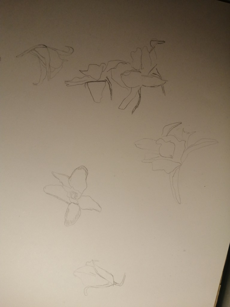 This first sketch of the flower is quite large to scale and it wouldn’t allow me to fit a whole image onto my a free page although answer the sort of size I would feel more comfortable creating this image with as it gives me more room to play with the details and quality