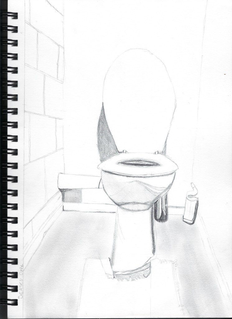 A lovely view of the toilet. I can see that I paid more attention to the shadows and reflections in this sketch it allows me to see more space in just a clean white area.