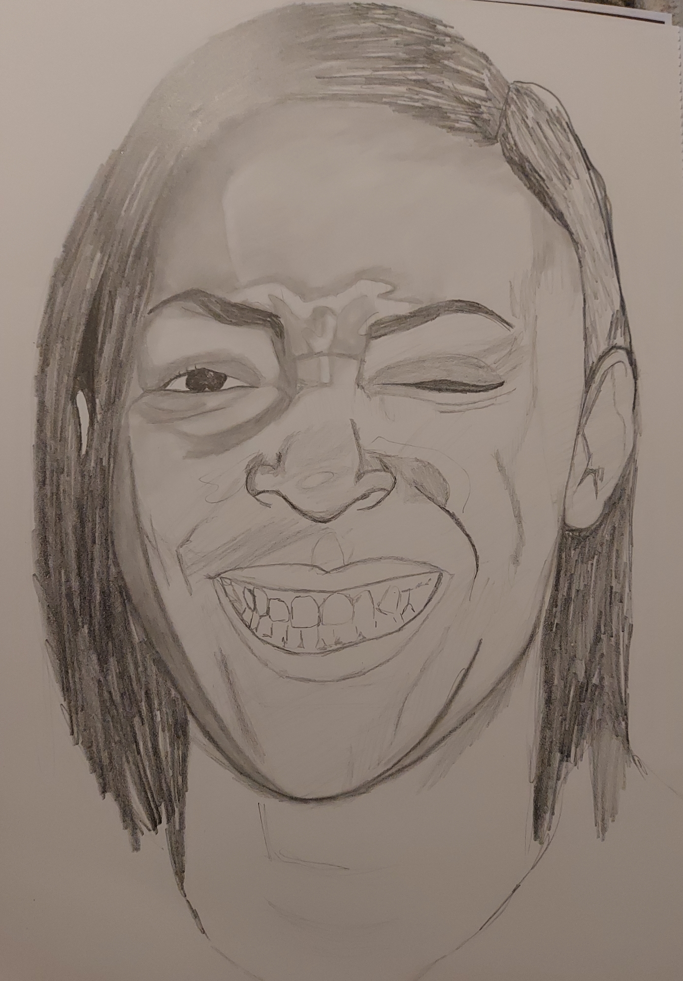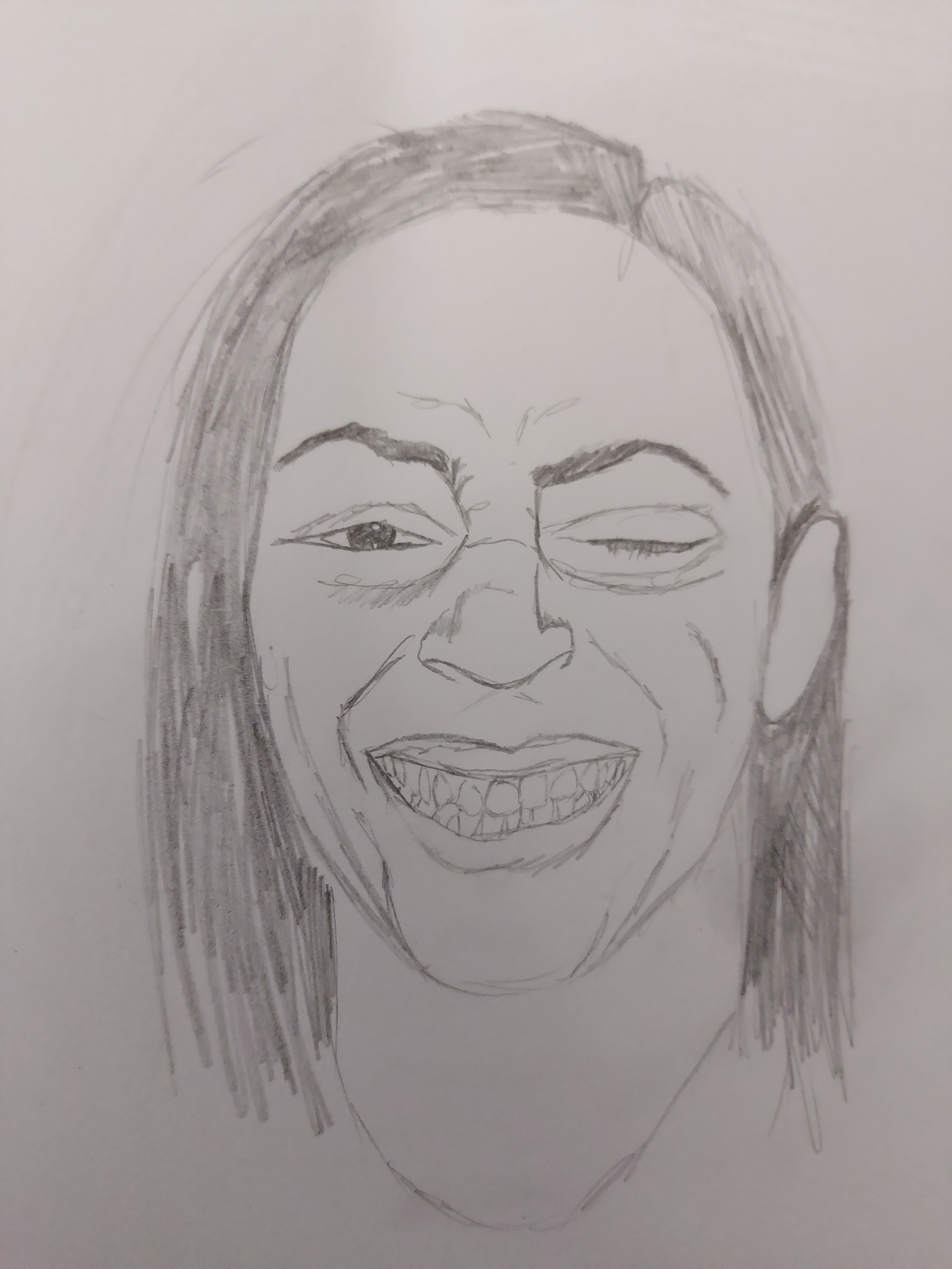 I feel as though you are able to see the character that I wanted to give of which is clearly a visible happiness. The way this image has captured my model defines this image as naturally laughter is infectious. My skill for tone and colour needs a lot more work and I would like to practice mixing some darker skin tones and more faces with prominent features such as wrinkles, moles and freckles.