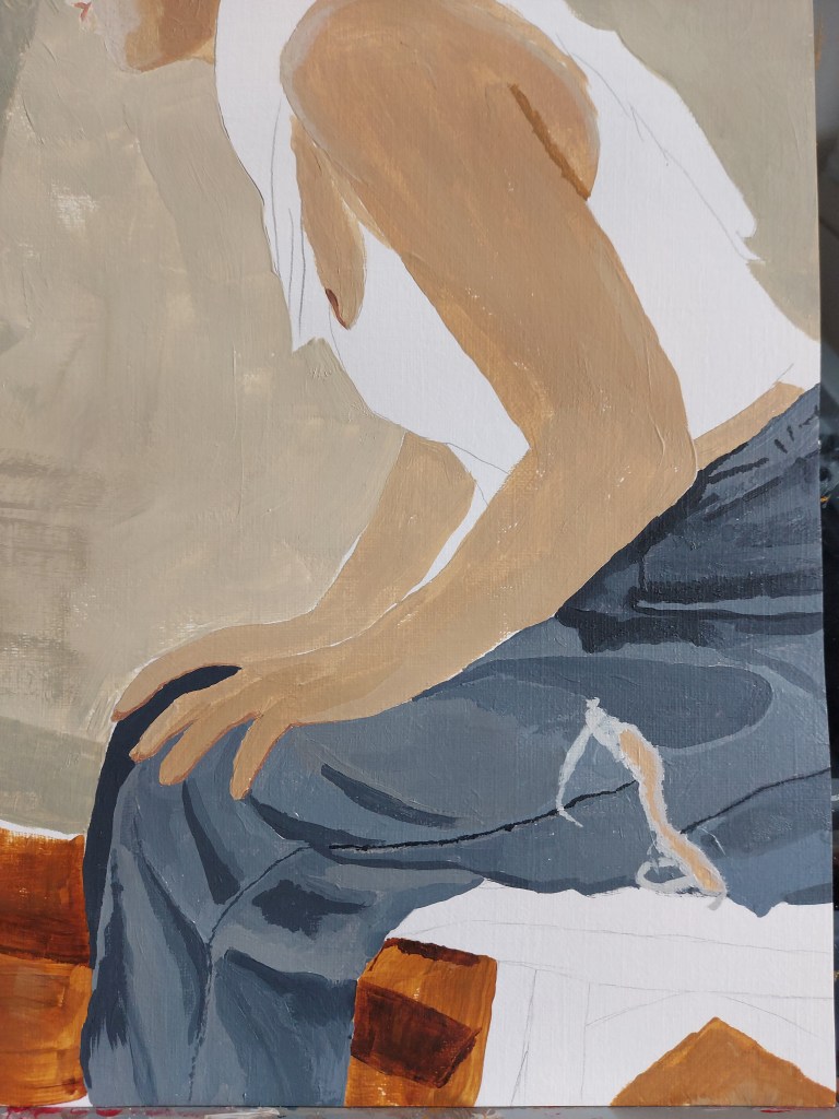 The denim is very dark throughout the video and in the still and I wanted to fully develop the right tones that would allow us to fully see the creases and folds. This is where I used the most amount of slow-dry medium.