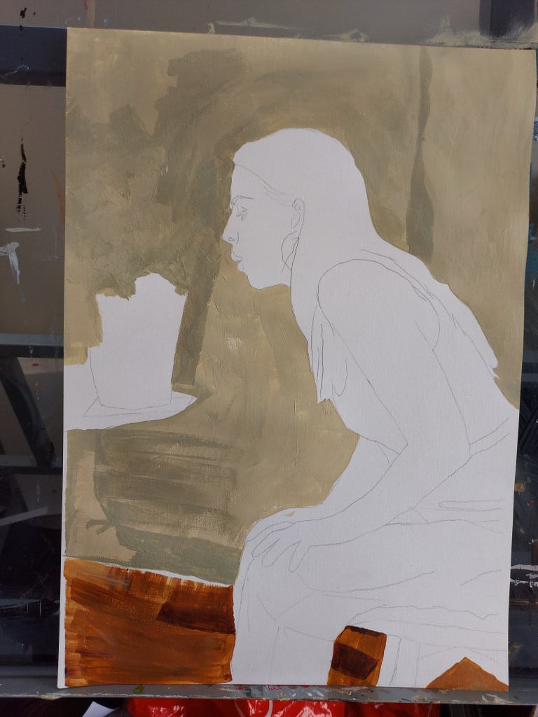 Comfortable with the plan, I chose to work with a ‘acrylic’ paper over canvas or canvas board. I actually felt a lot more confident starting this painting.