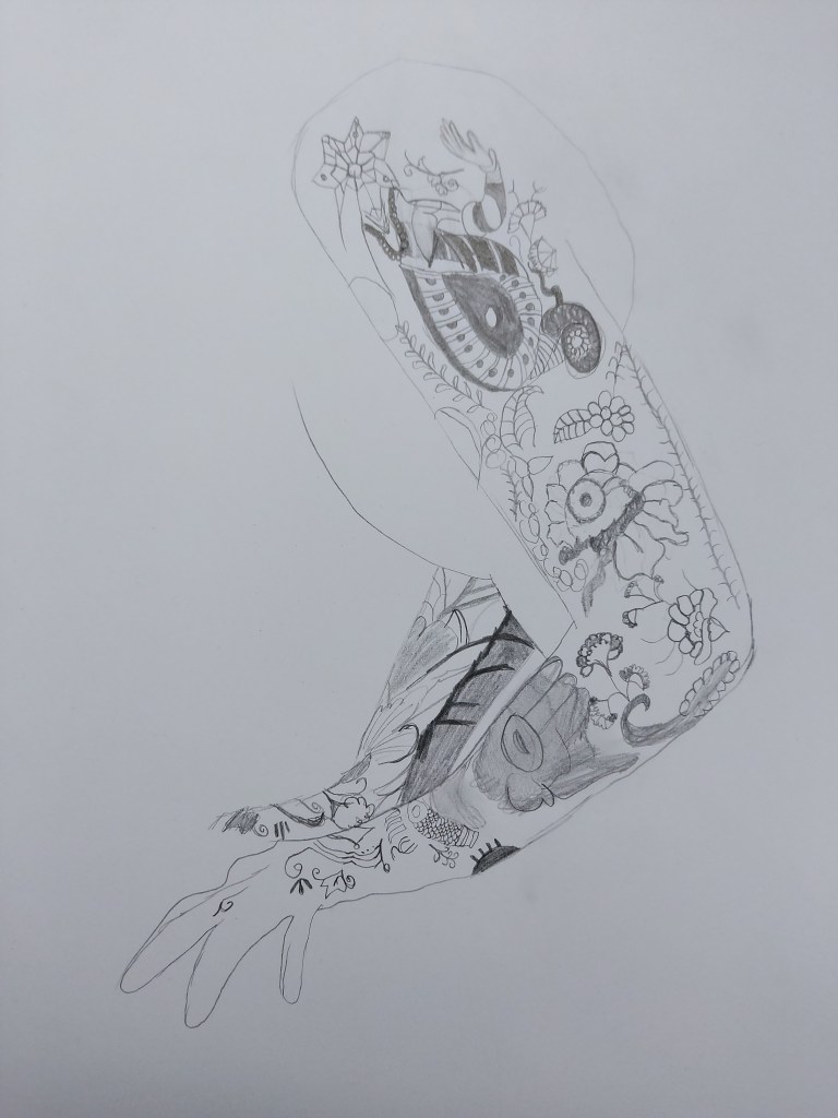 My preparation drawings was focused on the arm due to the heavy tattoos, I wanted to see how well I could recreate such a heavy filled arm.